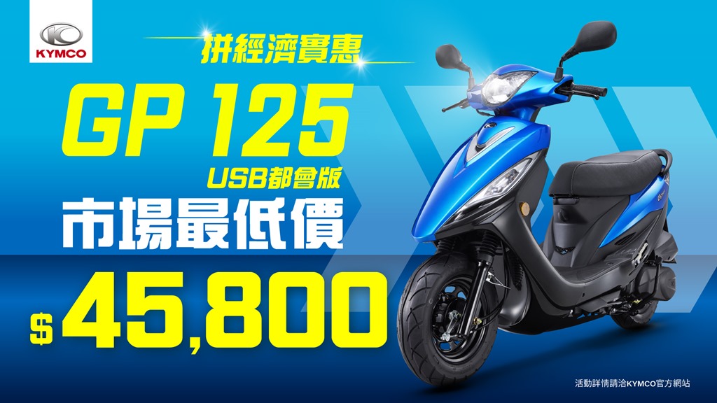 光陽推出的 GP125 USB 都會版,以市場最低價 45800 元的優惠價進行促銷,相較於建議售價 58000 元,節省了大筆費用。該車型以經濟實惠為主打,不僅價格親民,還配備 USB 充電接口,便利性更高,對於日常通勤者來說是相當理想的選擇。