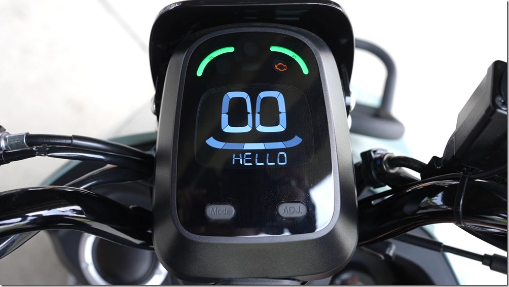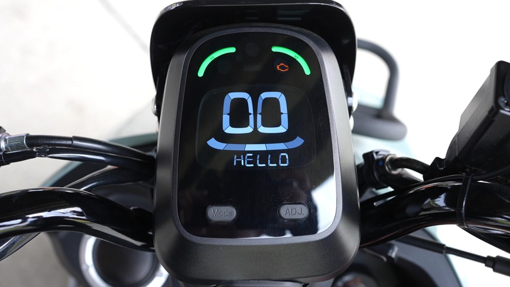 這調性在互動儀表上,也得到了呼應,以帶著圓角的方形設計,搭配不像光陽傳統風格的調皮顯示畫面,開機跟你說 Hello,關機說聲 Bye,當加滿油時就給個微笑,雙黃警示燈打開,那個略顯搞笑的眉毛就出現。如果不說,還以為是哪一家新創電動車品牌車款上的儀表,但它就是光陽換了年輕腦袋後的設計。