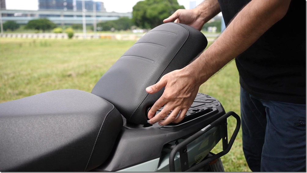 掀開後座後,還能成為前座的靠背,因為設計的非常穩固,是真的可以靠上去,不只在載貨時可以有個真正獨立的載貨區,即使不載貨,靠著騎也算舒服。