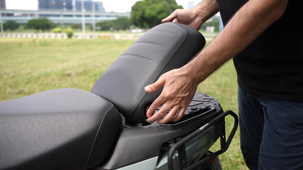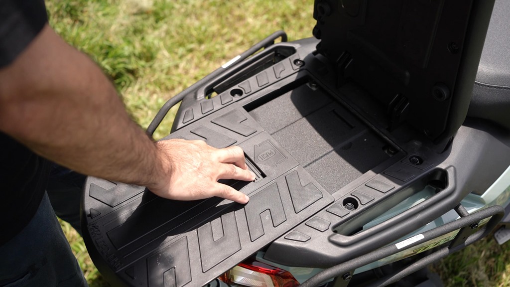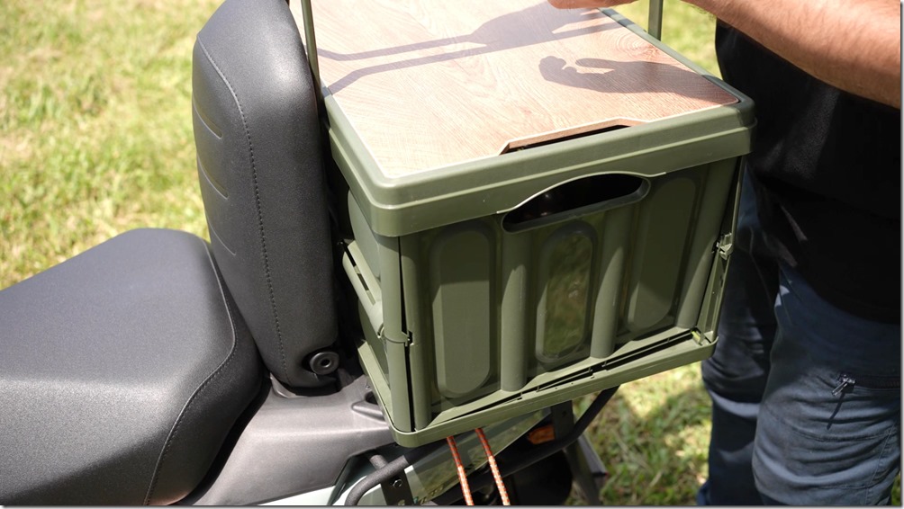 而後方的載物空間真的很大,尤其是把載貨平台往後拉時,又加上有著 40 公斤的負重能力,連外送箱這麼大的箱體,都可以不用加裝貨架輕鬆放上去,更不用說是要去環島的行李。
