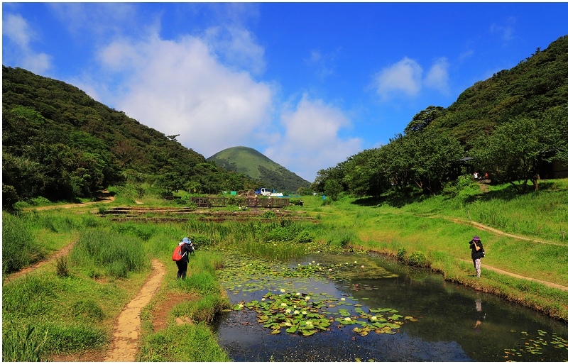 ▲二子坪最美的池塘濕地,水塘裡開了好多美麗蓮花,濕地孕育了許多蛙類唷,遠方像是圓錐體的山則是面天山,像不像是小富士山縮影呢。