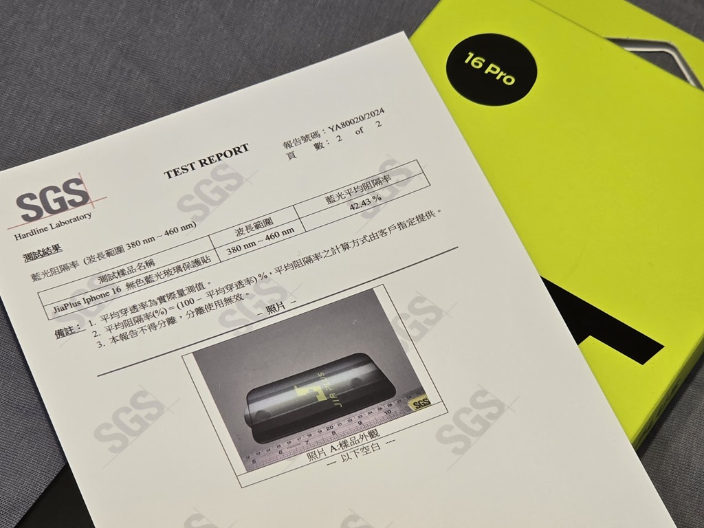 接下來直接實拍分享給大家,在開始實測前,當然要先做好手機保護,尤其是螢幕保護貼絕對不可少。近年大家對雙眼防護的概念越來越注重,抗藍光保護貼也蔚為風潮,但藍光保護貼最大的問題就是會影響顯示器的色彩表現,也就是色偏。不過這次要推薦給大家的佳佳貼,不只有著 SGS 認證可降低 42% 藍光的功能,而且透明無色,對於顯示品質更要求的朋友,這款專為 iPhone 16 系列打造的佳佳貼,是相當好的選擇。