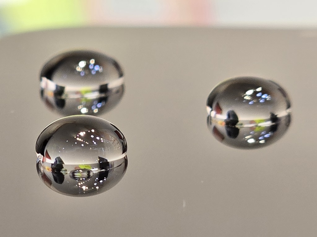 抗髒污與指紋上,佳佳貼也下了功夫,以日本塗料,經真空電鍍,直接以水滴測試,達到 115 度水滴角,更耐油汙也更好清潔。而真空電鍍也更耐磨,官方表示可超過 1 萬次磨耗依然能維持塗層功用。