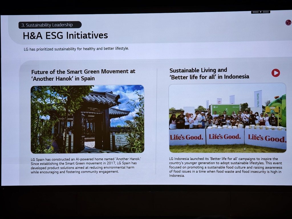 除了技術創新,LG 也強調其對可持續發展的承諾。從建立自家的回收中心,到推出更高效能的節能家電,LG 持續為環保貢獻力量。在西班牙,LG 推出了碳中和住宅「Casa Green Home」,展示其對環境友好型技術的投入。而在印尼,LG 也積極推動「更好的生活,為所有人」的品牌活動,致力於促進年輕世代的可持續生活文化。
