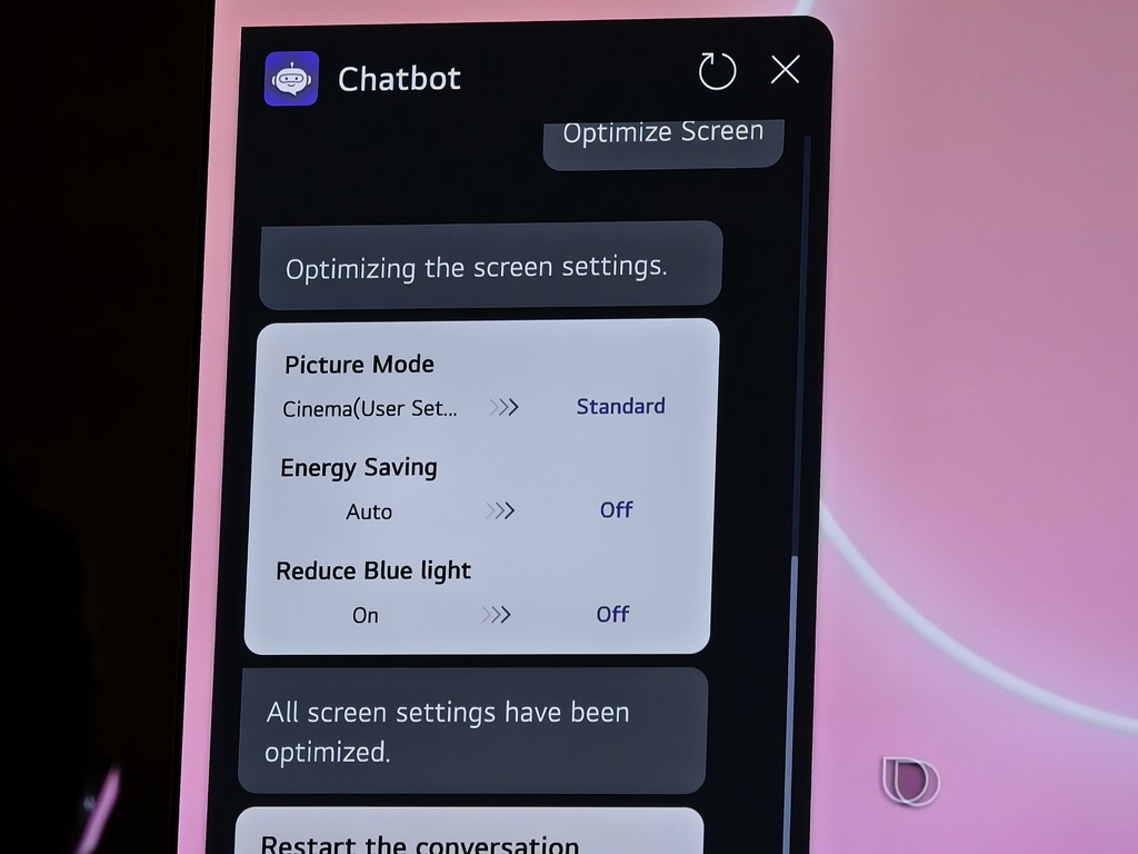 除了個性化的內容與設定,還加入更強大的故障診斷功能。當電視出現問題時,以往使用者需要撥打客服電話逐步排除問題,而這套系統透過語音命令即可進行自我診斷。使用者只需說出「診斷電視」或「螢幕太暗」等簡單的語音指令,AI 系統就會自動分析並給出解決方案。這功能非常適合不熟悉技術問題的使用者,讓他們不再需要依賴客服來解決每個小問題,大幅縮短解決的時間。