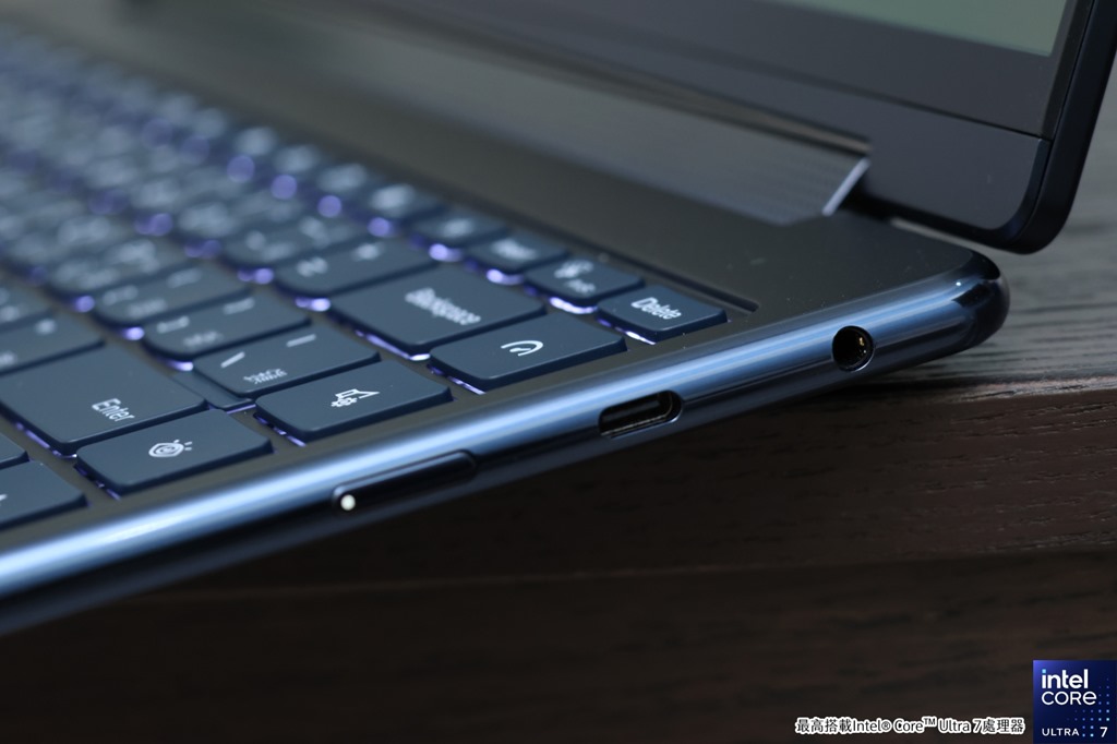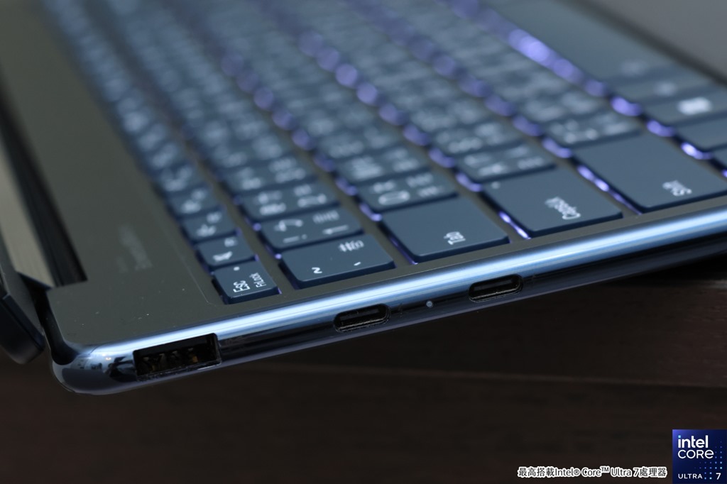 右側連接埠有 USB-C 3.2 Gen 1 和耳麥孔,左右兩側都有 USB-C 這配置滿好的,要搭配其他擴充配件使用更方便。