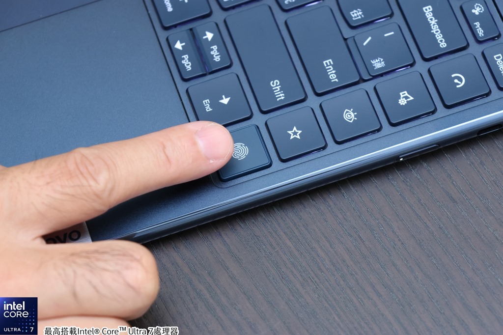 指紋辨識器設計在右下角,可以快速解鎖登入主畫面,也可以搭配 Windows Hello 使用。