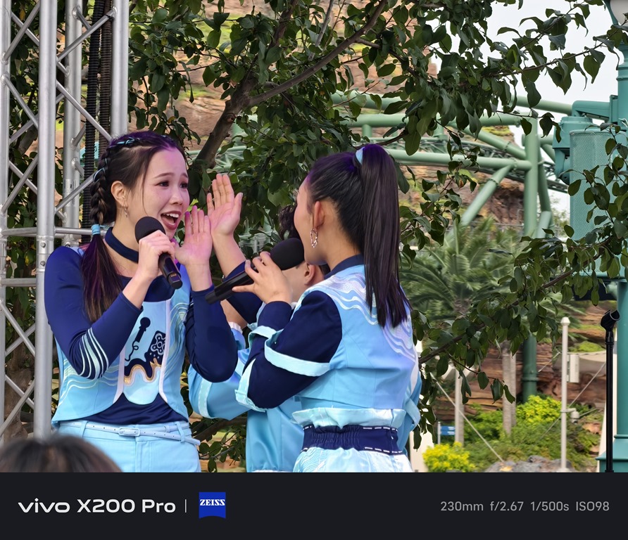 使用場景當然不只在夜間的酒吧或演唱會,在遊樂園中的演出,同樣可以用長焦舞台來拍攝。