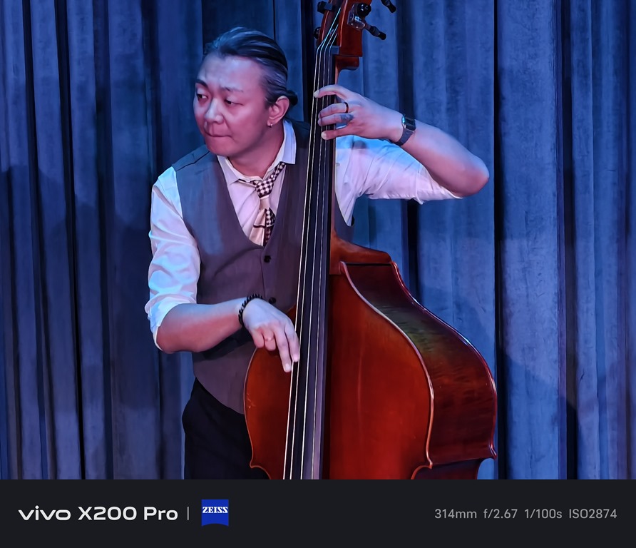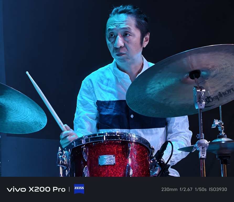 在離舞台比較近時,是相對簡單,當然對 X200 Pro 來說,就是輕而易舉,加上長焦後,甚至連樂手的表情都可以輕鬆掌握。