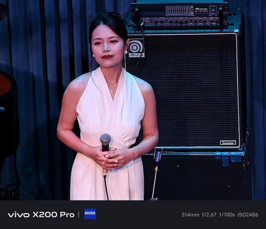 很多朋友對 vivo 長焦非常期待的原因,就在長焦舞台的功能。用智慧型手機拍攝舞台並不容易,舞台上燈光混亂,很容易造成主角過曝,另一個問題就是焦段到底有沒有足夠,畢竟不是每個朋友都買得到搖滾區。而這兩點在 vivo X200 Pro 的長焦舞台模式,都可以完美解決,不只焦段夠長,數位變焦的解像力也足夠,在演算法挹注下,光線控制得宜,完全不用手指再次點選主角調整 EV,拿起手機就可以拍。