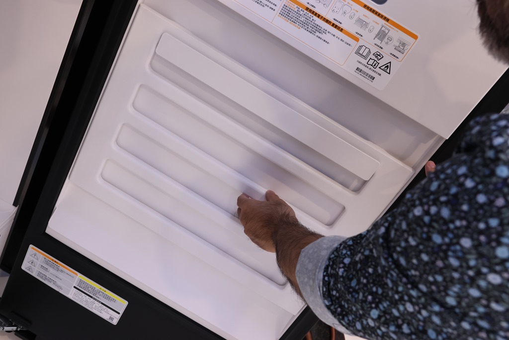 另外一個也非常實用的功能,就是除濕,其實上一代機種就有這功能,將原本就可以幫衣物除濕的功能,透過將衣櫥門打開來達到除濕效果,但這樣的使用體驗並沒有太理想,也沒有那麼直覺。所以新一代機型就針對這點改善,變得更進化,將衣櫥上下方設計了開孔,達到免開門就可以為室內空間除濕的效果。