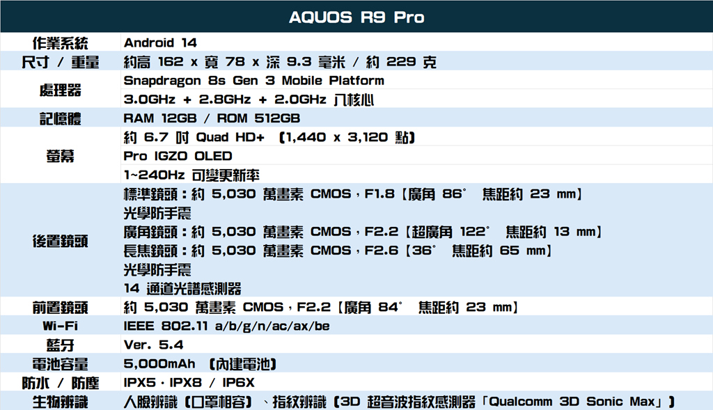AQUOS R9 Pro 主打旗艦級相機與 AI 功能