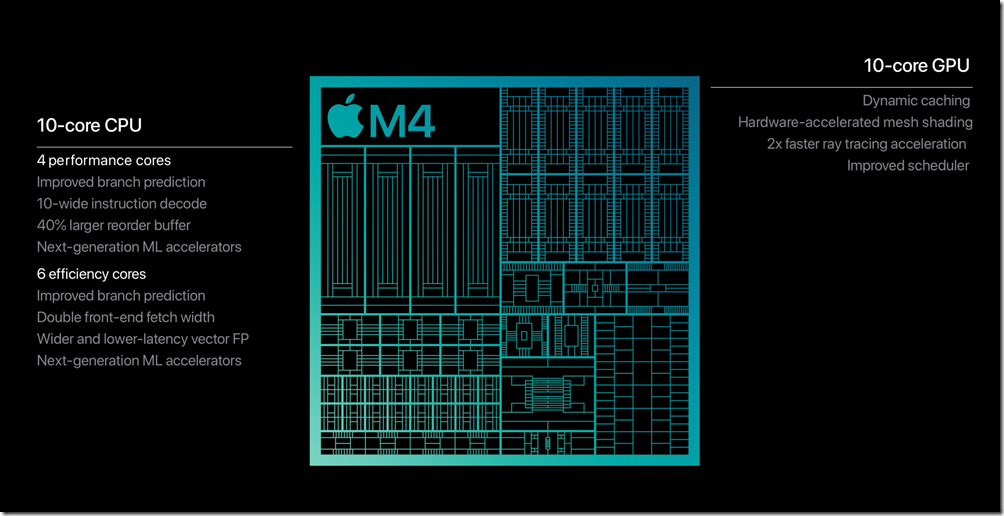 M4 系列為 Apple Intelligence 打造,這是一套全新智慧系統,結合生成式模型與創新隱私保護功能,幫助使用者以更高效的方式在 Mac 上工作、溝通和創作。Apple Intelligence 採用裝置端處理,並透過「私密雲端運算」支持更複雜的運算需求,隨時保護使用者隱私。目前此技術已在 macOS Sequoia 15.1 中支援美式英文。