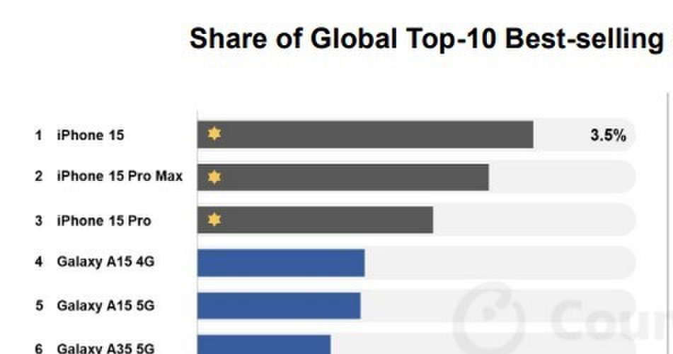 每年第三季,是 Apple 新機種推出的重要時刻,也是許多消費者划算入手前一代 iPhone 的好時間,根據 Counterpoint Research 的最新統計報告,iPhone 15、iPhone 15 Pro Max 和 iPhone 15 Pro,再次拿下 2024 年第三季全球手機銷售前三名。但值得注意的是,在前 10 名的銷售量,iPhone 的佔比略有下降,而三星依靠豐富的產品組合,在前 10 名的市佔比例微幅上升。