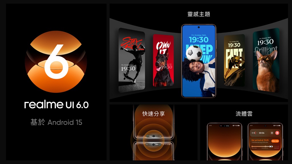 系統採用全新 realme UI 6.0,融合流暢設計與 AI 功能,為使用者帶來更個性化的操作體驗。全新靈感主題支援自訂息屏顯示、圖示與桌布,讓每位使用者能展現創意風格。此外,流體雲功能可讓使用者快速切換多個即時活動,提升操作效率;realme 快速分享則讓兩部手機輕鬆互連,檔案傳輸更方便。