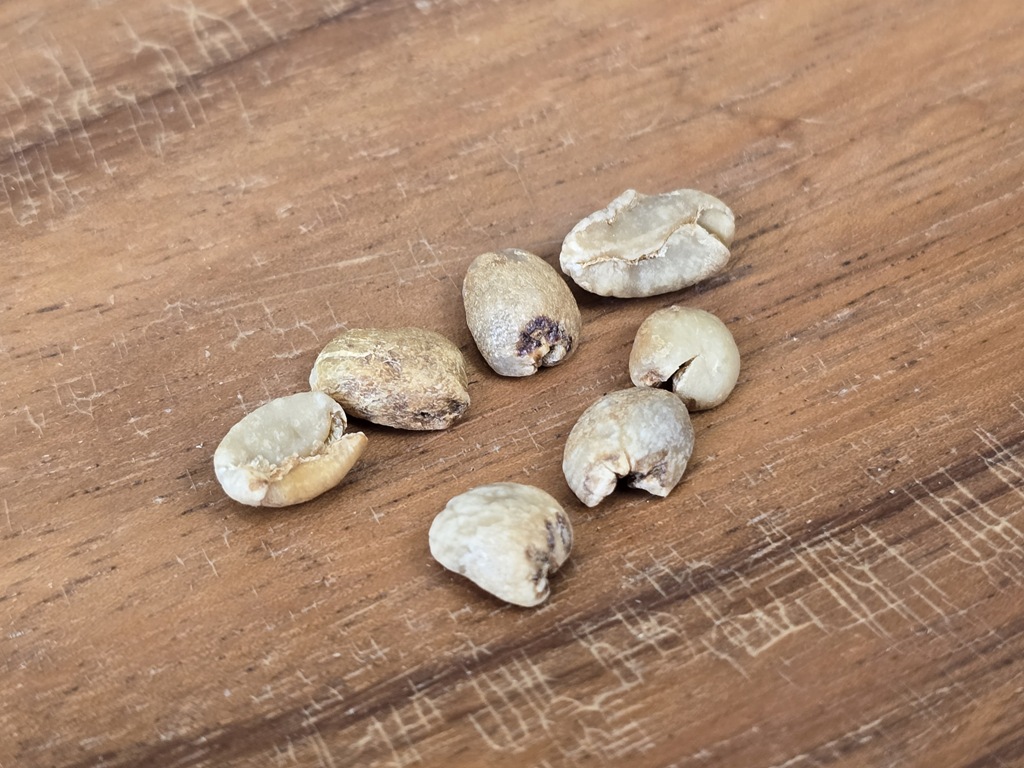 如果想要讓咖啡風味更好,有幾點要提醒大家。首先是挑豆,可以把生咖啡豆中的壞豆挑出來,可以避免壞的風味混入好的咖啡中,至於壞豆長什麼樣子,建議大家可以 Google 一下,應該有非常多的範例照片讓你看。