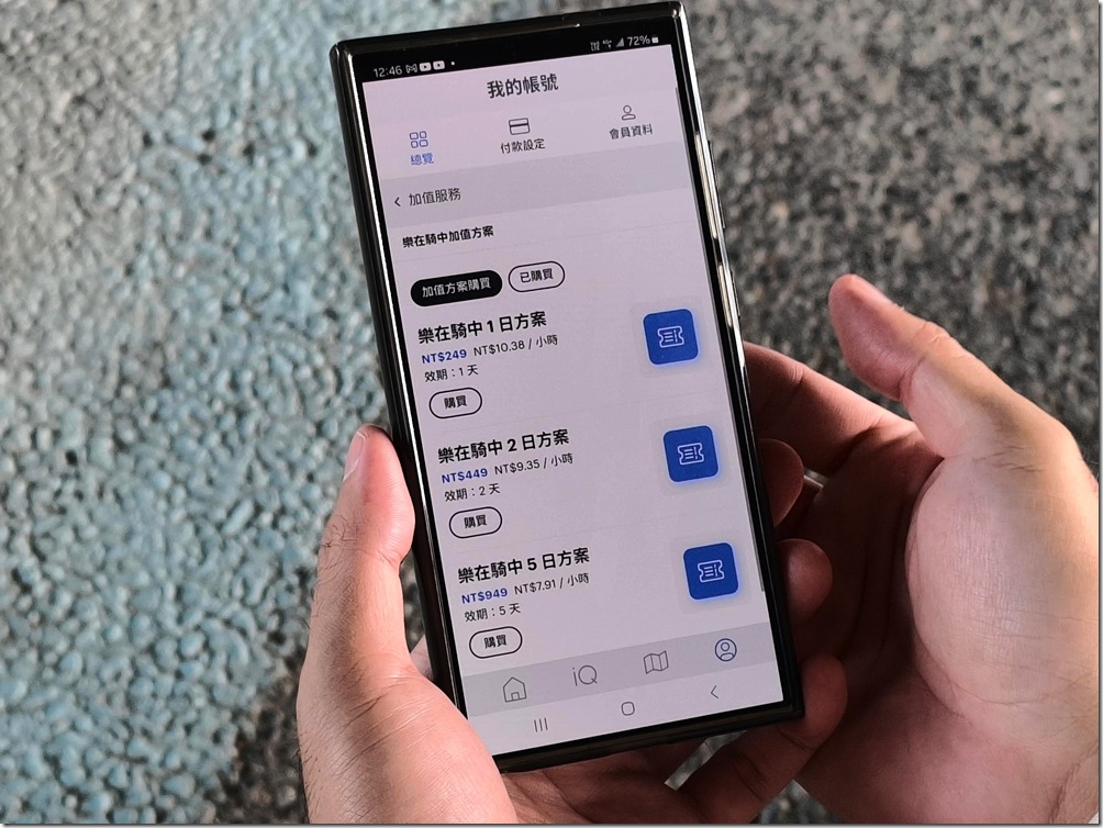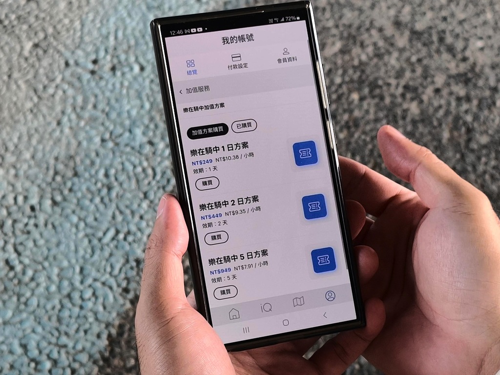 不過還好最近 Gogoro 推出「樂在騎中」資費加值方案,像是這次的宜蘭一日漫遊,就可以選擇 1 日方案 500 安時 $249 元,大概可以騎 550 公里左右,基本上就等於一整天吃到飽,直接騎上北宜公路到宜蘭玩都不用擔心,這比起超出里程數的費用,這方案真的划算太多。另外還有 2 日與 5 日的方案,像是假日騎 Gogoro 來宜蘭玩,或是想要環島,都非常適合。