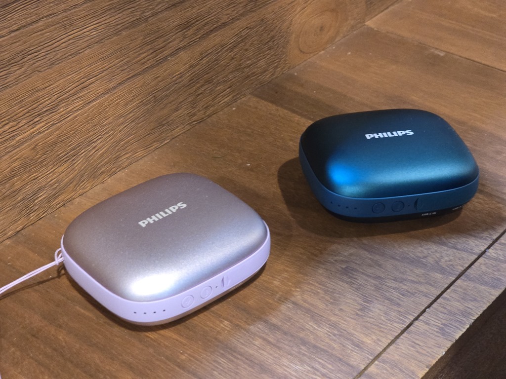 PHILIPS 暖手寶行動電源集加熱與充電功能於一身,擁有 5200mAh 的電池容量,能在 3 秒內迅速加熱,提供 360 度全方位環繞式溫暖。使用者可依需求調整兩段式溫度,範圍從 45°C 到 50°C,不僅適合攜帶出門,也是秋冬時節的理想保暖夥伴,隨時為您驅走寒冷。
