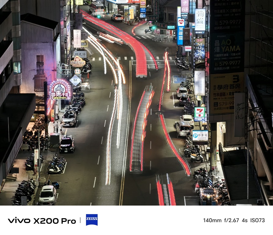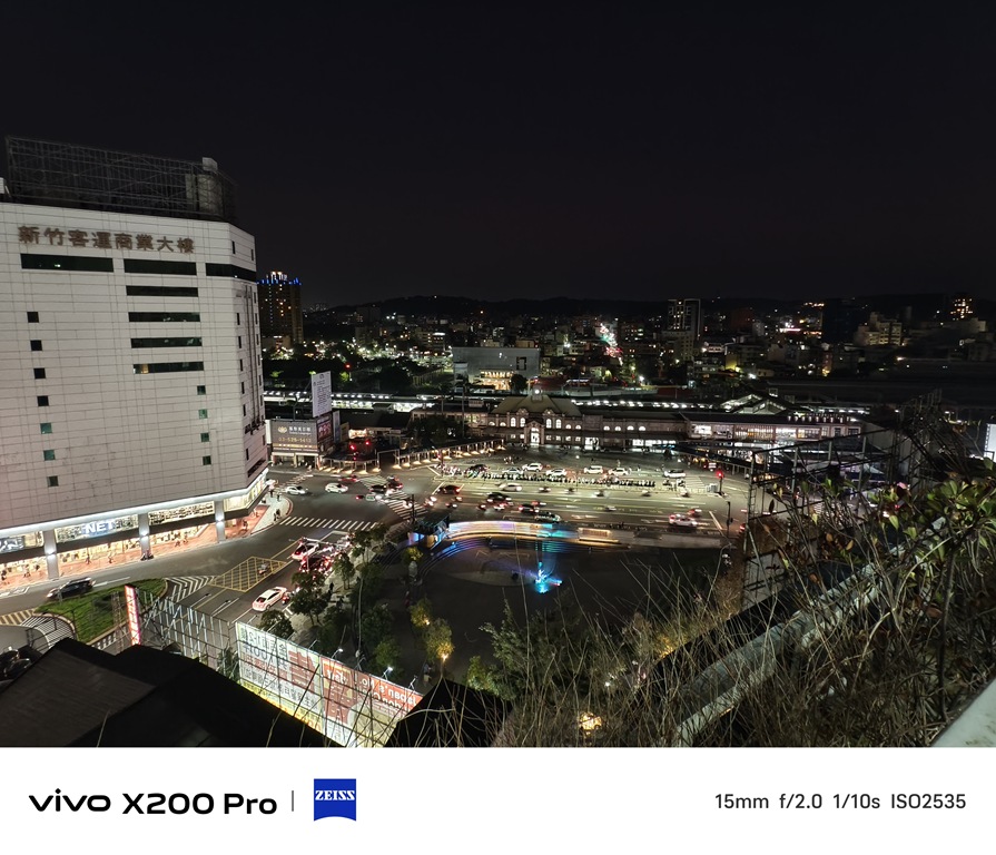 話說,兩款手機都有手持拉光軌的功能,雖然兩款手機的光軌呈現都很醜,但在照片中可以看到 X200 Pro 在高光抑制功能更為優異。
