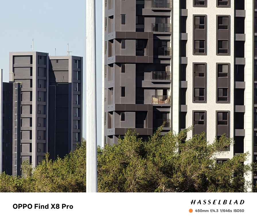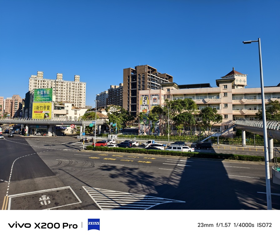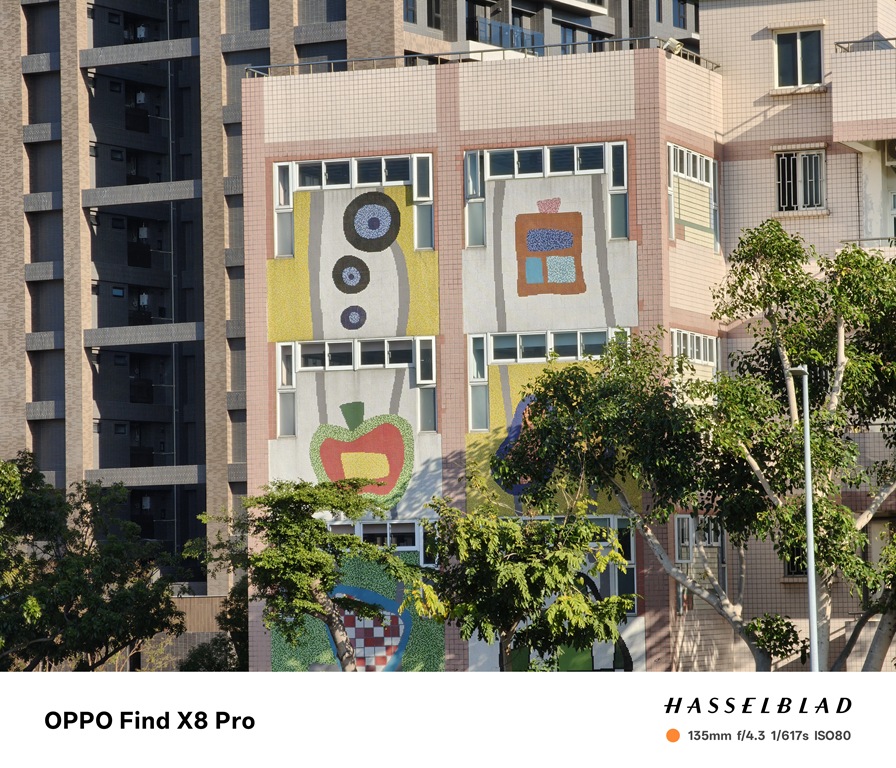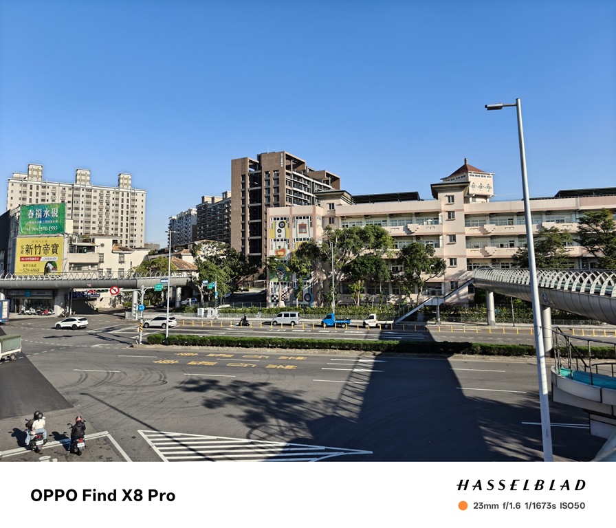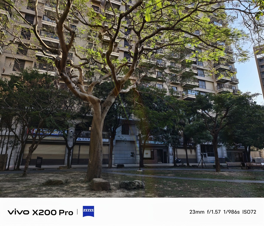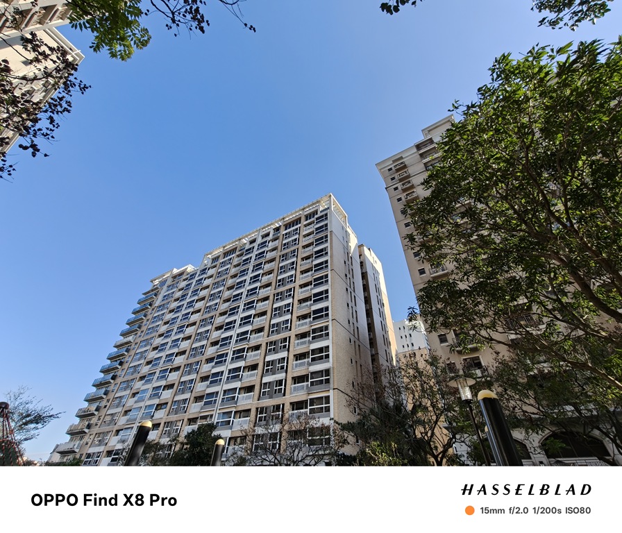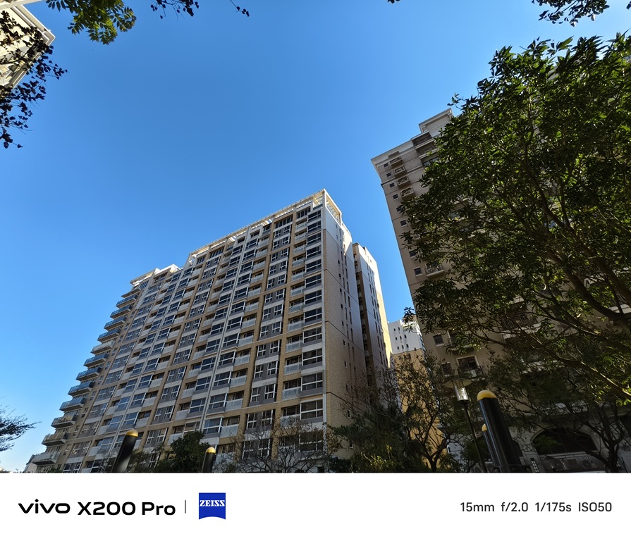 細節部分,基本上完全分不出高下,表現都滿好的。不過 X200 Pro 預設超廣角矯正功能,所以拍攝建築物時會比較正,而 Find X8 Pro 選項中沒有看到這功能。