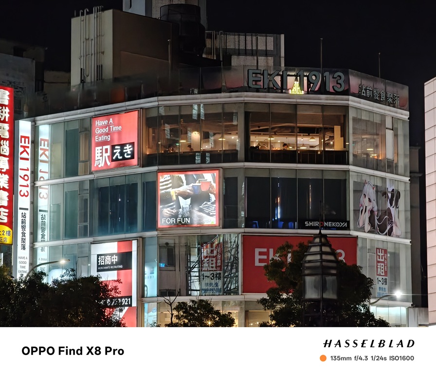夜拍部分,X200 Pro 同樣有著高對比的特性,與日拍比起來,差距變小很多,反而分不出與 Find X8 Pro 的差異。但 Find X8 Pro 對於高光抑制上的表現,就沒有 X200 Pro 來的明顯。