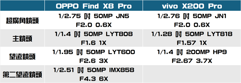 說到 OPPO 與 vivo,這兩家在這幾年的進步超級快,尤其是在攝影能力上,根本就突飛猛進。OPPO 與哈蘇合作、vivo 與蔡司合作,也都得到很好的養分。不過從去年開始,兩家在望遠鏡頭上走出不同的路,OPPO 在 Find X7 Ultra 上採用了雙潛望望遠鏡頭,而 vivo 在 X100 Ultra 上使用 2 億像素感光元件作為望遠鏡頭重要根基,而今年分別推出的 Find X8 Pro 與 X200 Pro 就是繼承這樣的鏡頭配置所推出。到底誰走的路才是正確的?就讓我們繼續看下去。