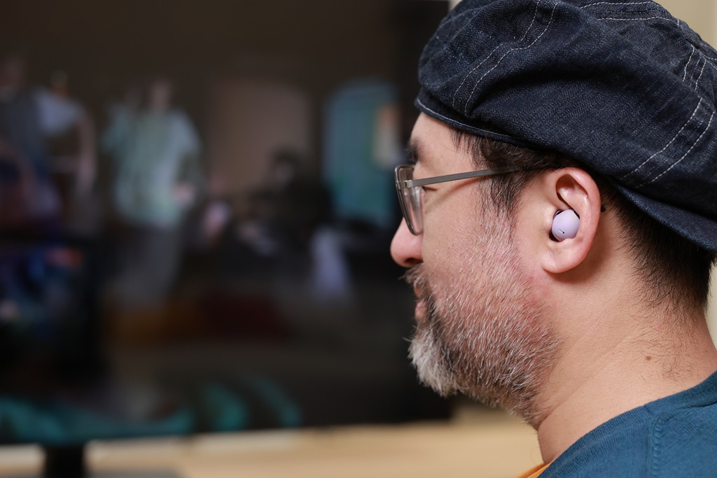 如果搭配 Galaxy Buds 使用的話,可以享受 360 度音訊功能,例如聽樂團演奏好了,戴上耳機之後搭配 360 度音訊,簡直是直接坐在錄音室中央的感覺,轉到哪個方向就能聽清楚來自那個方向的樂器聲音。