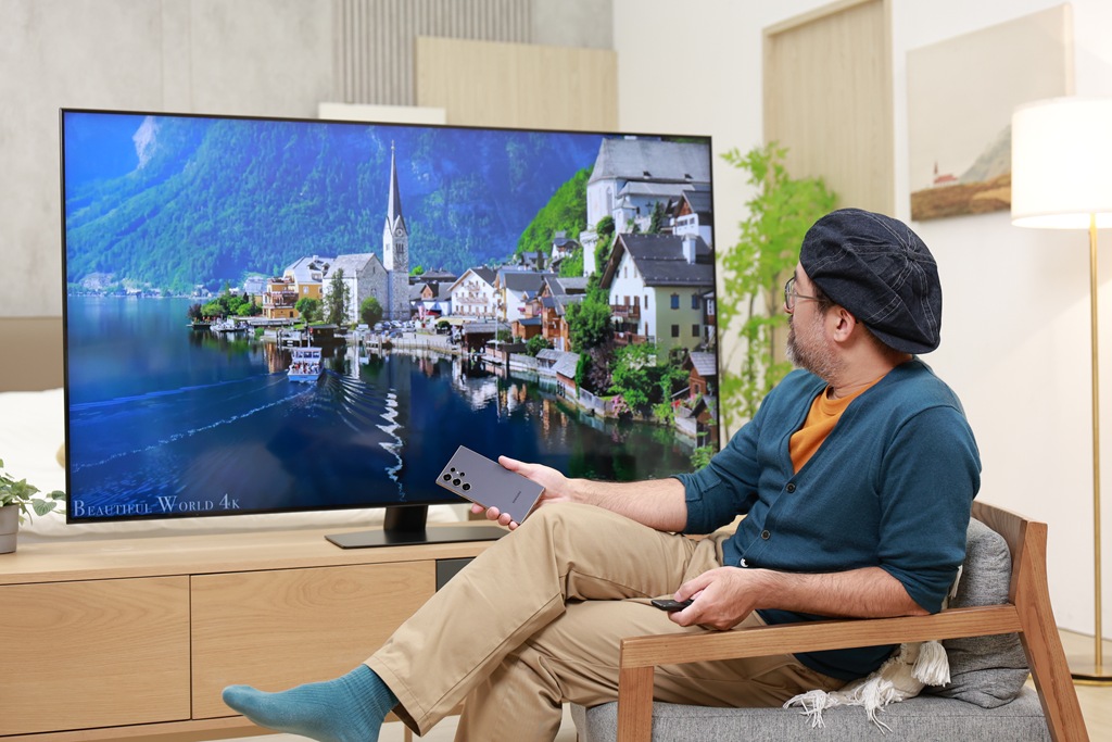 身為三星生態系的一員,QN87D 智慧顯示器當然也可以串連整個三星生態系,它採用三星自家的 Tizen 作業系統,內建 SmartThings Hub,支援最新的 Matter 物聯網連接規範,簡單來說就是可以將智慧家庭的配備,例如掃地機器人、空氣清淨機、檯燈等等可連網的家電串連到電視上,直接在電視上得到這些智慧設備的通知。