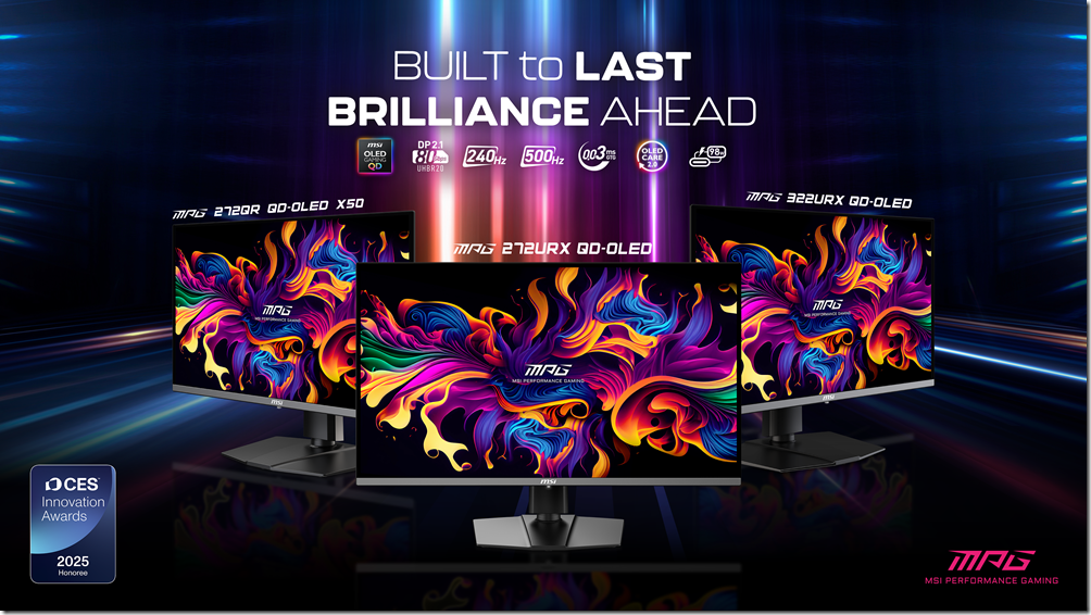 微星科技(MSI)於 CES 2025 發表多款全新電競螢幕,包含搭載最新技術的 27 吋 4K 240Hz 以及 QHD 500Hz QD-OLED 螢幕,展現對次世代遊戲需求的專注。此次新品主打透過智慧功能強化使用者操作便利性,同時提升遊戲效能,帶來更沉浸的視覺體驗。
