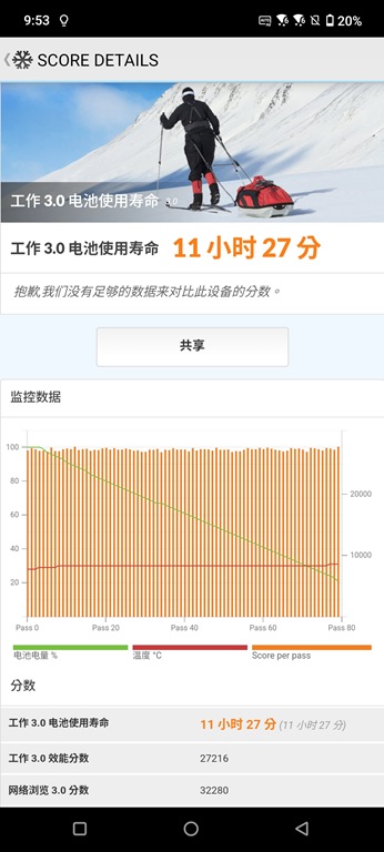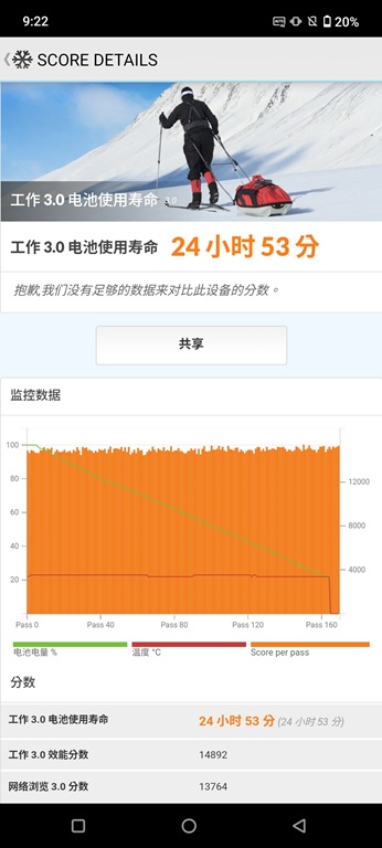 電池電量部分,與上一代同樣採用 5500mAh 大電池,以高效能模式測試,續航達 11.5 小時,以日常使用的動態效能模式測試,續航將近 25 小時,雖然電池沒變大,但續航明顯優異許多,顯示在電量管理上做得更好了。