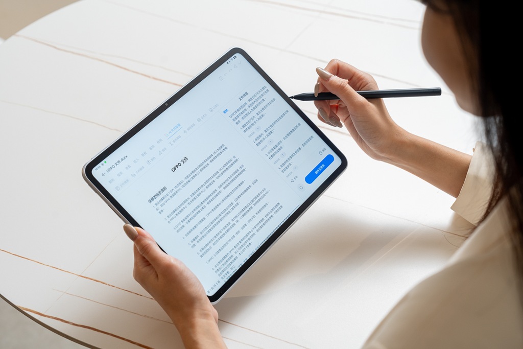 這次發表的 OPPO Pad 3 柔光版,是 OPPO 首款結合 AI 辦公與影像功能的平板,搭載 7:5 黃金比例的 11.6 吋柔光霧面螢幕,支援抗反光、防眩光與減藍光技術,具備德國萊茵 TÜV 智慧護眼認證,不僅提升長時間閱讀的舒適度,更讓螢幕呈現書本般質感。平板內建多項 AI 功能,如智慧摘要、文案改寫、翻譯轉檔、圖像去除雜物與生成風格圖片等,讓工作與創作流程更高效。