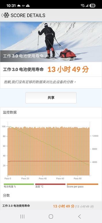 電力續航部分,在 50% 亮度、開啟 Wi-Fi 下,以 PCMark 工作 3.0 模擬日常使用實測,續航力達 13 小時 49 分,雖然不是頂尖水準,但正常使用狀況,維持一整天應該不會有太大問題。