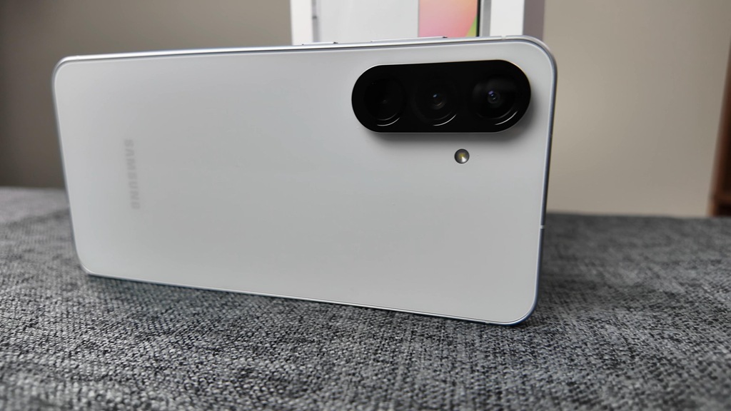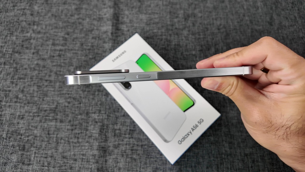 Galaxy A56 在外觀設計部分延續了三星一貫的設計語彙,不過這次更有旗艦感,一拿到手時還覺得這鏡頭模組怎麼似曾相似,後來拿起我手邊的 Z Fold 6 後才恍然大悟,原來 A56 就是 Z Fold 6 拆掉一半螢幕的樣子?