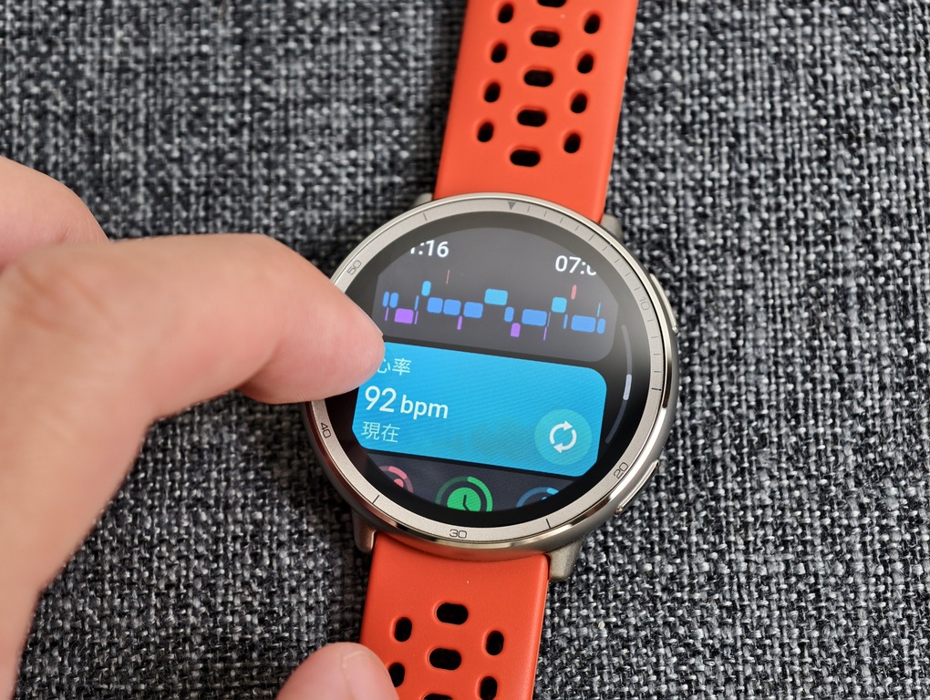 Amazfit Active 2 在外型上的第一印象就是「不搶戲,但有質感」。錶體線條簡潔俐落,搭配 1.32 吋 AMOLED 螢幕,無論是視覺效果還是配戴舒適度都表現不錯。尤其在陽光下依然能清楚顯示資訊,亮度最高達 2000 nits,並支援 5ATM 防水,這對於常在戶外活動或通勤的使用者來說,是動靜皆宜的錶款。