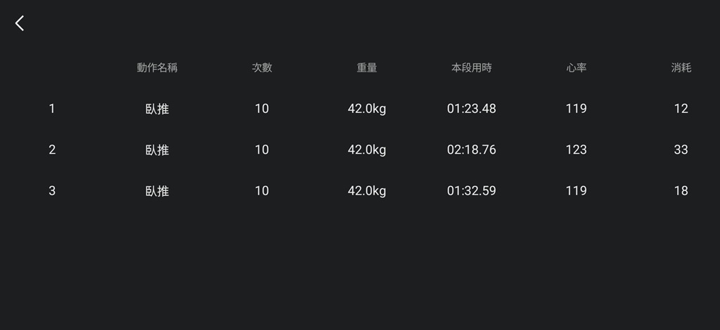 實測的時候發現,它能準確抓到我每一組的開始與結束,辨識度比我預期好不少,當然推多少重量是要自己輸入的。最重要的是。Zepp App 內還能回顧每次訓練紀錄,對於有規律健身習慣的人來說非常實用。
