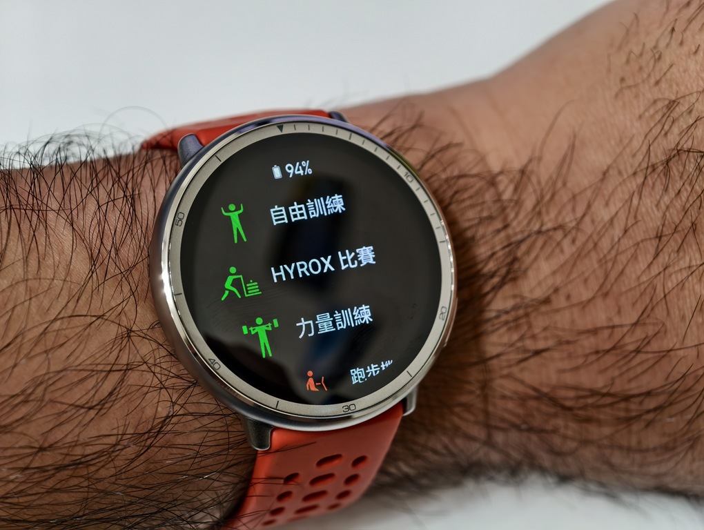 簡單說明一下 Hyrox 是什麼?它是一項結合有氧運動與力量訓練的比賽形式,起源於德國,主打「每個人都能參加的健身競賽」,參賽者要完成跑步搭配功能性訓練的循環流程,例如跑完一公里後,就要進行一公里的滑雪機訓練、或是沙包深蹲,而 Amazfit Active 2 是少數有支援這項目的運動錶。