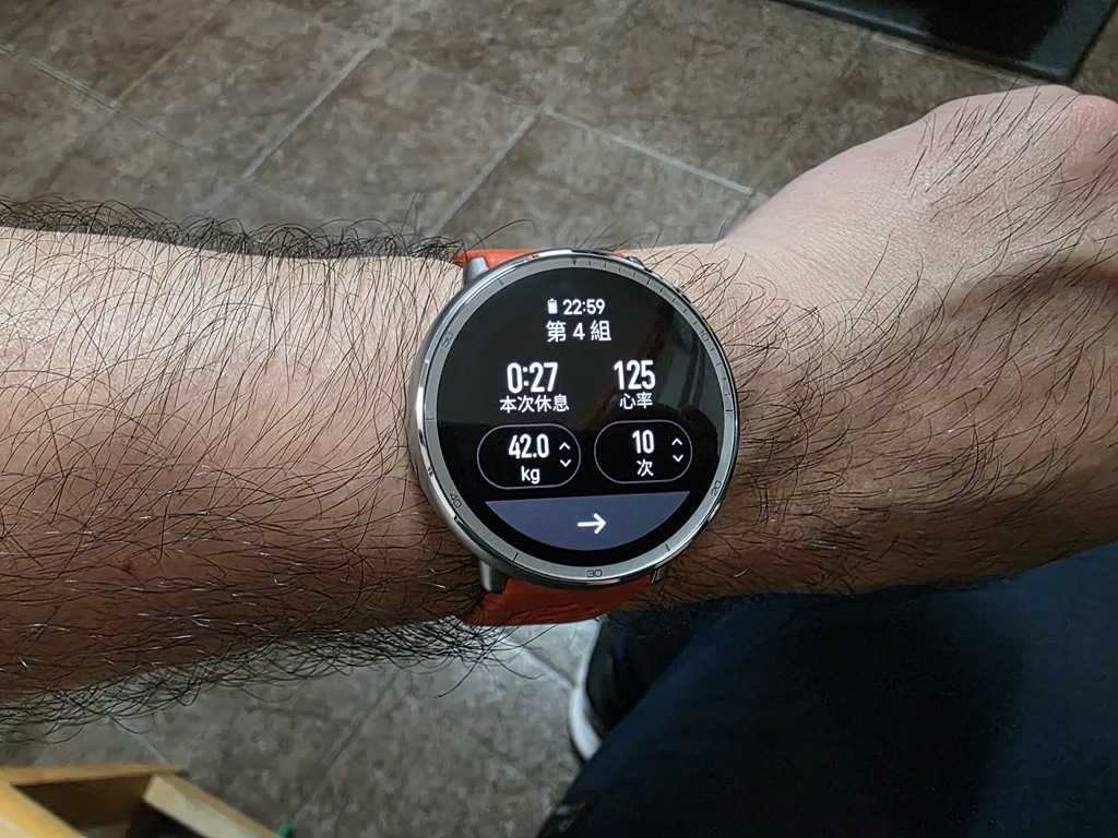 不過對我來說,最最實用的功能之一就是「智慧力量訓練」,它能自動辨識 25 種常見重訓動作,像是深蹲、伏地挺身、啞鈴彎舉等,並記錄次數、組數與休息時間。
