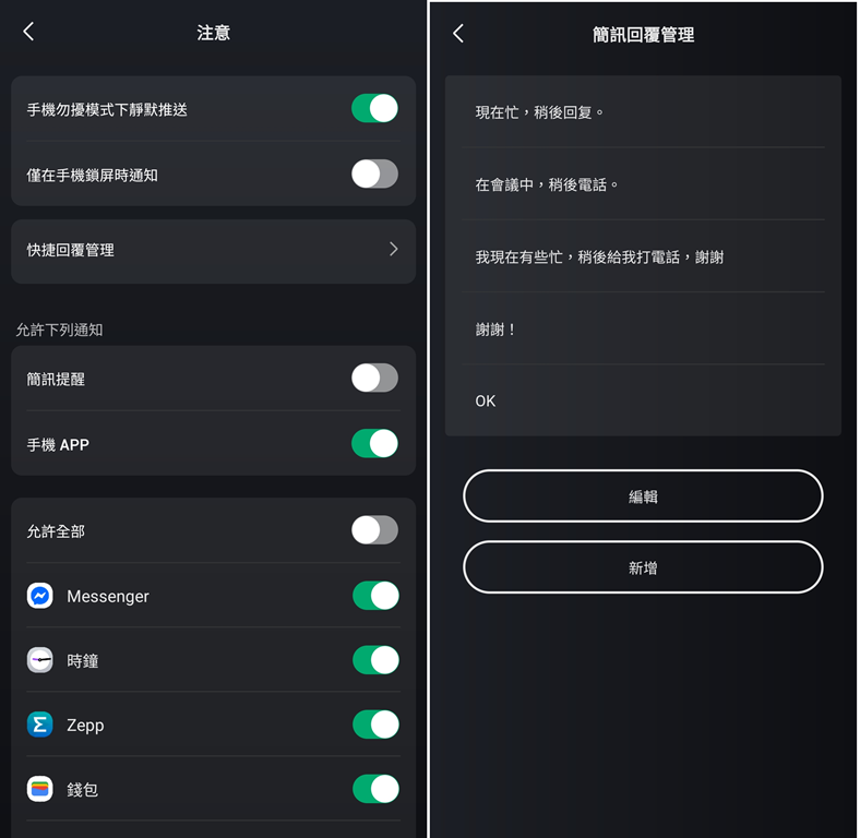 回覆內容都可以在 Zepp APP 中自訂,不只如此,還有更厲害的。