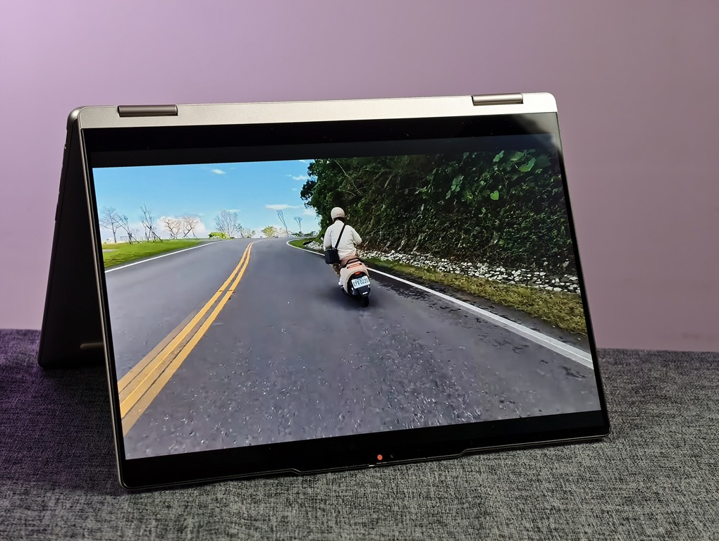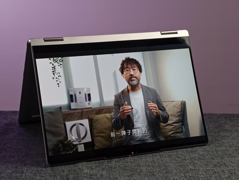 Yoga 7 2-in-1 配備了 4 顆立體聲喇叭,經過 Dolby Atmos 認證,聲音表現比一般筆電來得立體且層次分明。實測用來看電影或聽音樂,即使不外接耳機,音場與細節也能充分表現。若拿來開線上會議,效果同樣出色。