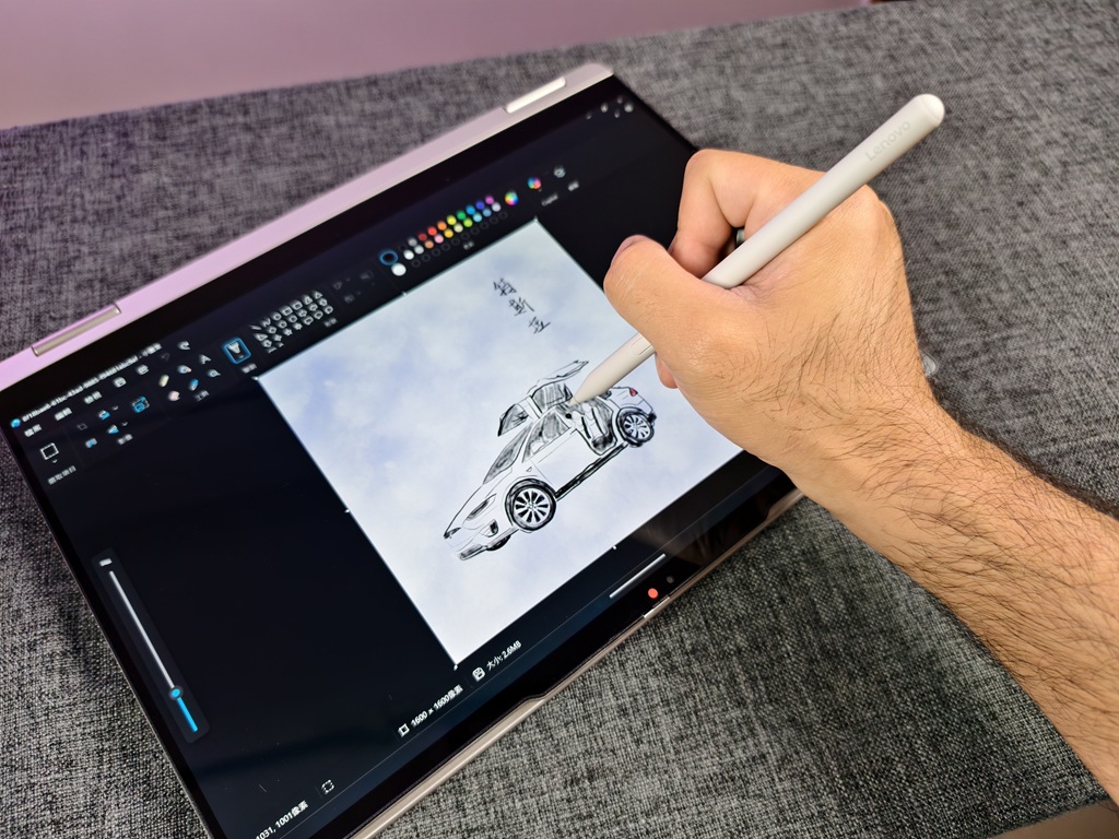 而當你把筆電翻成平板模式,配合隨附的 Lenovo Yoga Pen 使用,就能體驗到完整的手寫輸入。筆觸反應非常靈敏,壓力感應準確,不管是速寫、圈註還是作筆記都像在紙上書寫一樣自然。