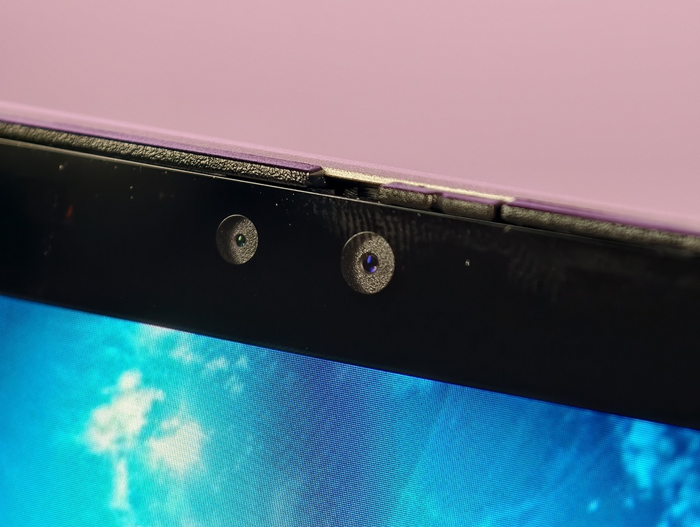 視訊方面,它內建一顆 5MP 攝影機,搭配紅外線鏡頭可支援 Windows Hello 臉部辨識登入功能。畫質在光線不佳的情況下仍清晰自然,四顆麥克風組成的陣列也讓收音非常清楚,並有主動降噪功能,即使背景環境稍有雜音,也不太影響通話品質。