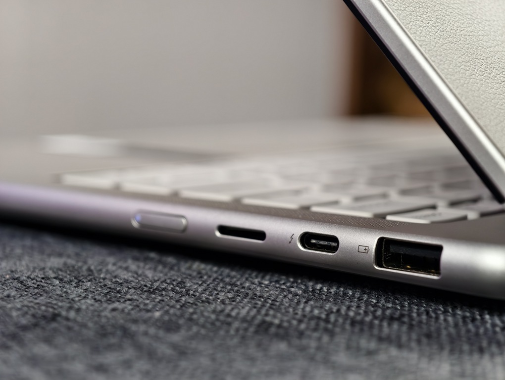 電池續航表現也很實在。它內建 70Wh 大容量電池,實測在中亮度、Wi-Fi 開啟的情況下,可以持續使用 8 至 9 小時左右,對一般日常工作已足夠應付。搭配 65W USB-C 快充,半小時能充入近 50% 電力,應急補電也很方便。