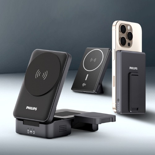 PHILIPS 全新推出的 Qi2 磁吸充電行動電源系列目前也開放預購,具備官方認證的 Qi2 標準,支援 15W 以上快速充電,更準確的磁吸定位可有效減少充電錯位問題,並搭配專利溫控晶片強化散熱效果,提升充電安全性。系列商品包含三合一充電座(早鳥預購價 1,590 元)、5000mAh 行動電源(預購價 1,490 元)與 10000mAh 行動電源(預購價 1,690 元),亦有多種同捆組合可選擇。