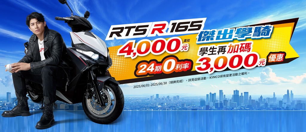 KYMCOx陳傑憲 輕鬆入手人生第一台夢想車 「RTS R 165 傑出學騎」學生專屬優惠