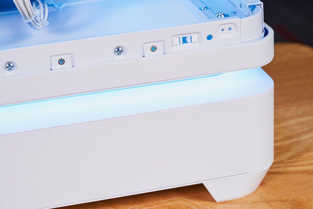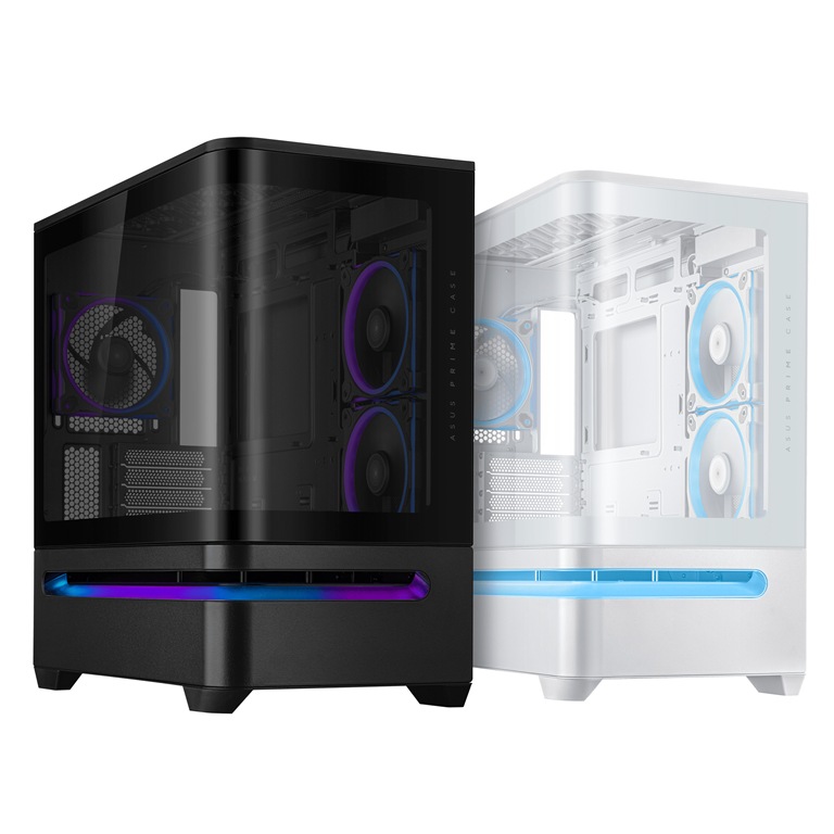 Prime AP202 提供星曜黑與晨曦白兩種配色,方便使用者根據個人風格自由搭配。面板經過鋼化與熱彎製程強化,並搭配快拆導軌與防脫落設計,讓安裝與維護更輕鬆。內建三組 MR120 ARGB 風扇,有效提升散熱效率,也讓機殼呈現豐富燈光效果。底部配置可調整的 L 型環境燈條,燈效設定可透過 Armoury Crate 軟體操作,自由調整光效風格。
