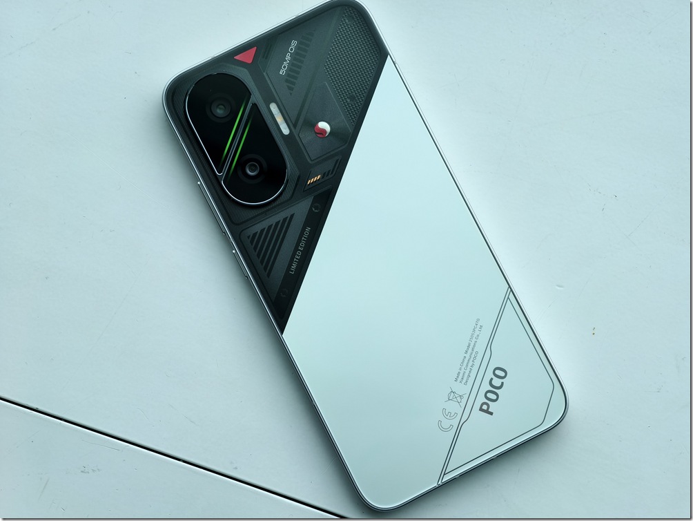 外觀方面,POCO F7 採用玻璃背蓋與鋁合金中框,機身具備 IP68 防塵防水能力,通過 70 公斤抗彎測試。推出黑、白與機甲銀三色,機甲銀版以賽博機械風為靈感,強調金屬質感與未來感。
