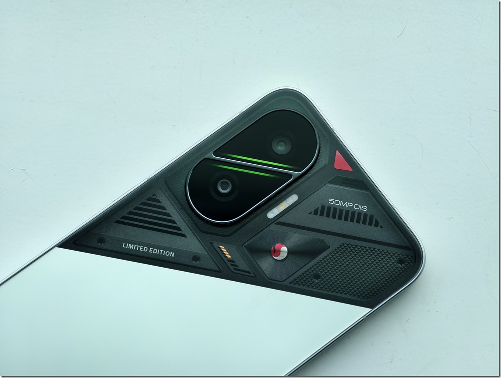 相機部分,主鏡頭搭載 Sony IMX882 感光元件,為 5000 萬畫素並支援 OIS 光學防手震,另搭配一顆 800 萬畫素超廣角鏡頭,日常拍照與夜景表現均可兼顧。自拍鏡頭為 2000 萬畫素,不只遊戲視訊,日常自拍也非常好用。