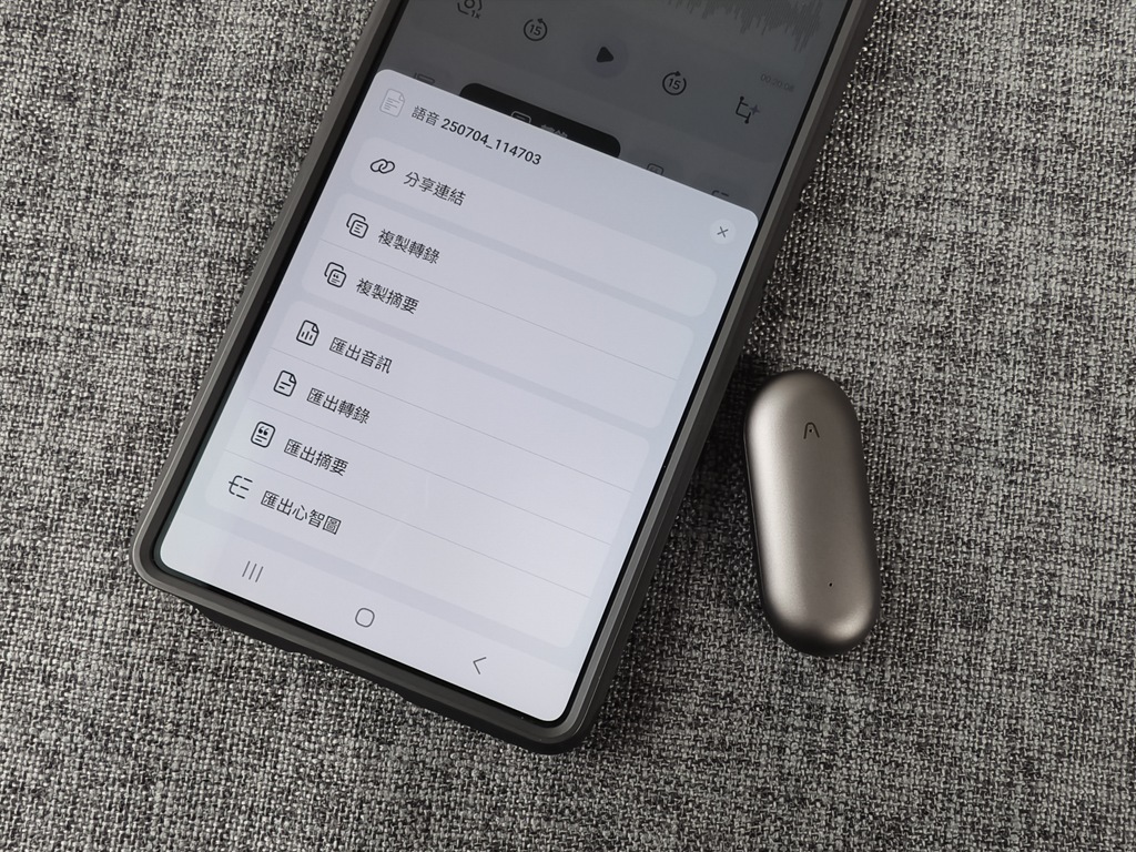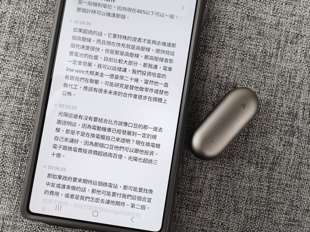 再加上 AI 自動降噪技術,像是空調嗡嗡聲、紙張翻動聲都會被適度淡化,讓人聲更突出,即使把膠囊放在口袋中,也能清晰收錄。錄下來的聲音清晰,也能提高 AI 語音辨識的準確度。