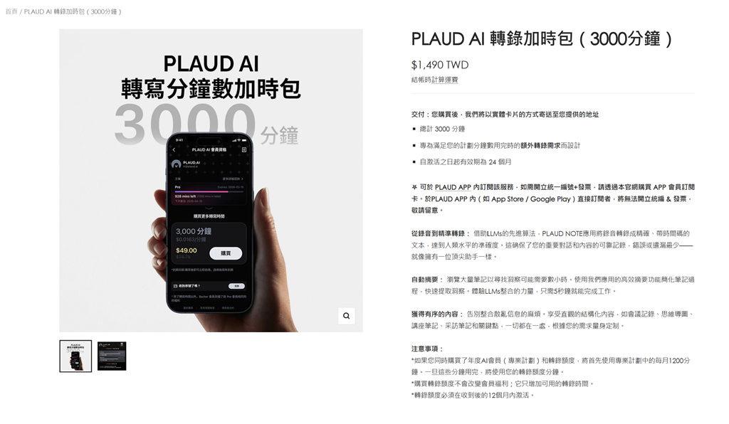 對了,如果你購買 NotePin,就可以每個月有 300 分鐘的轉錄額度,如果不夠,可以加購分鐘數。