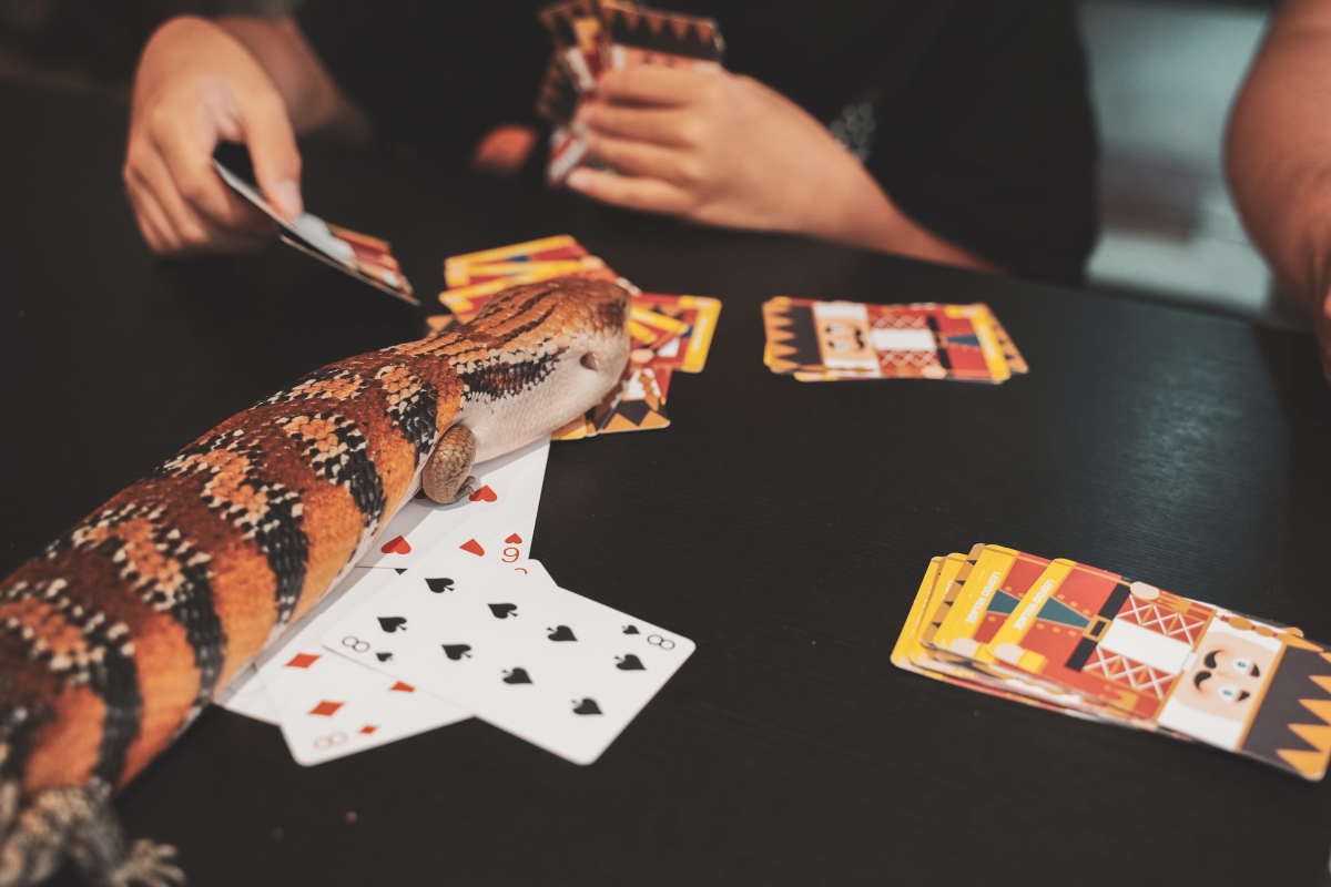 提供桌遊給客人自行取用,我們在那邊玩了一下午,小孩玩牌,我和爬蟲玩!超級開心~